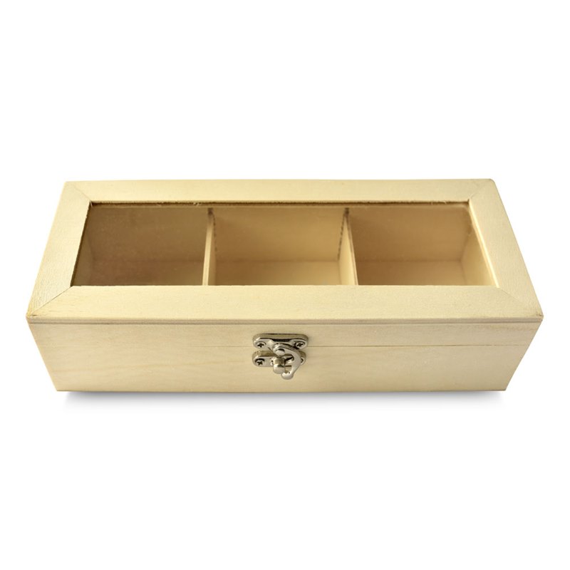 קופסא מחולקת (3) ,עמוקה עם חלון שקוף המשמשת גם לשקיות תה .